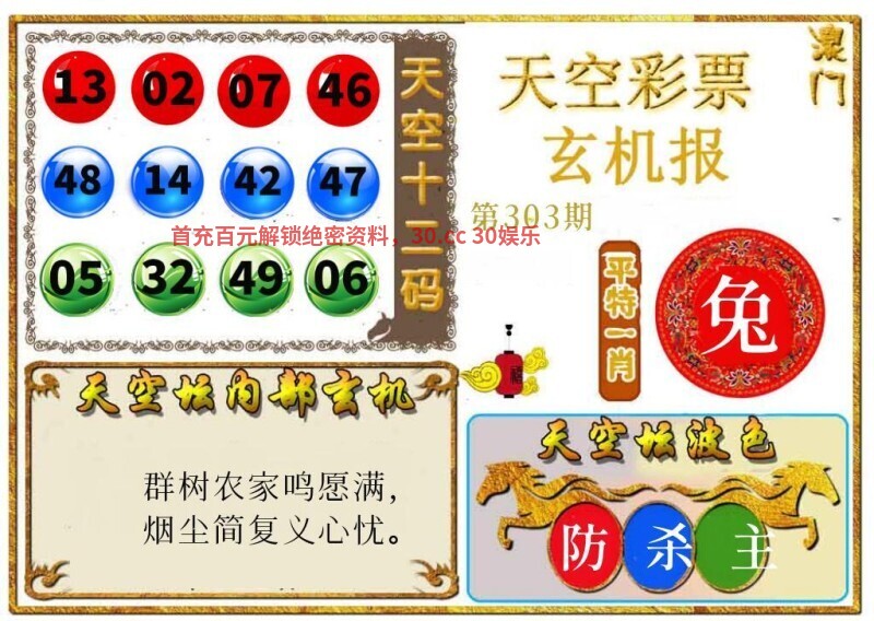 | 303期:吉美凶丑【吉美】开:兔15准 |